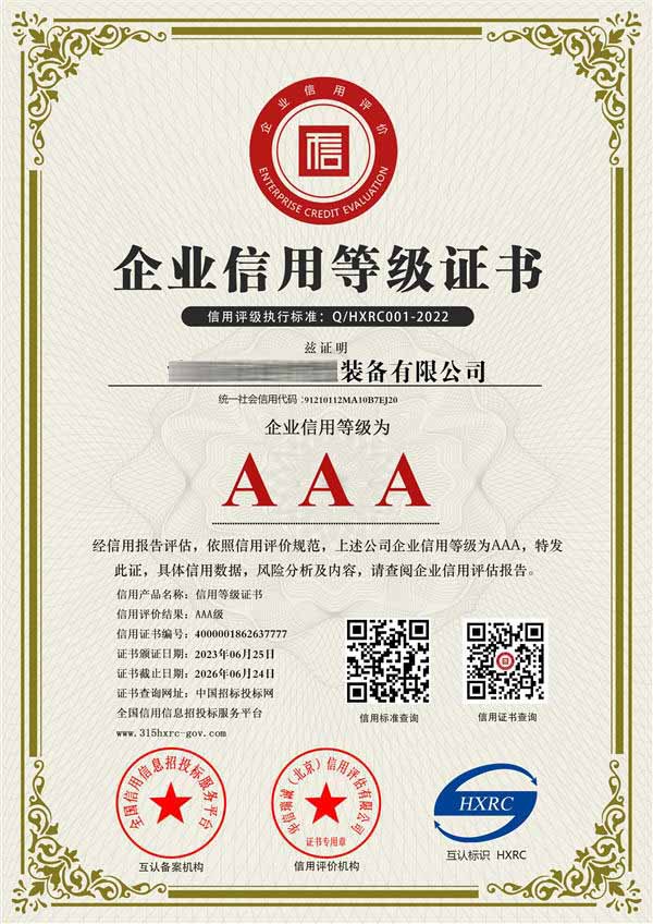 AAA级信用等级证书通常包括:企业信用等级、企业资信等级、诚信经营示范单位、重合同守信用企业、质量服务诚信企业、重服务守信用企业、重质量守信用企业、诚信企业家、诚信经理人、诚信供应商等证书。
